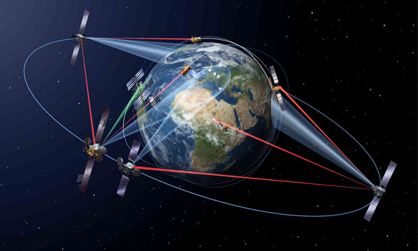 Cette demi-journée de conférences a été ponctuée d’une démonstration en direct de ce système appelé à créer une autoroute de données spatiales (« SpaceDataHighway »). Développé en partenariat public-privé par l’ESA et Airbus, EDRS est en effet conçu pour assurer un relais entre les satellites en orbite terrestre basse (LEO) et les stations au sol grâce à une connexion laser, afin d’accélérer la transmission de l’information.