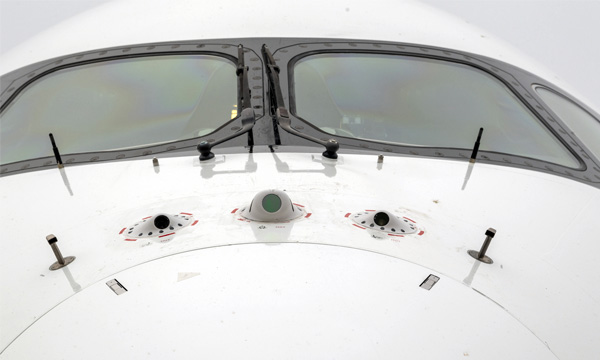 La partie émergée de l’iceberg consiste en ces trois caméras qui sont venues prendre la place des sondes de lacets (SSA), désormais virtualisées et en cours de suppression sur les A350 précédemment équipés, afin d’explorer de nouvelles fonctionnalités d’assistance à l’atterrissage et au roulage grâce à l’analyse d’images. Il est bien sûr aussi question de dialoguer automatiquement avec le contrôle de la navigation aérienne, de générer un nouveau plan de vol optimal pour le déroutement avec la prise en compte des informations des aéroports et des conditions météorologiques en vigueur.