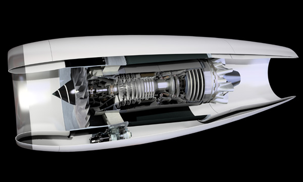Derrière, la turbine LP passe de deux à sept étages. Le motoriste a en revanche choisi de ne pas adapter d’aubes de fan en composites « parce nous avons besoin de vitesse, pas de dilution ». Il en résulte un coeur de moteur plus petit en taille et plus dense.