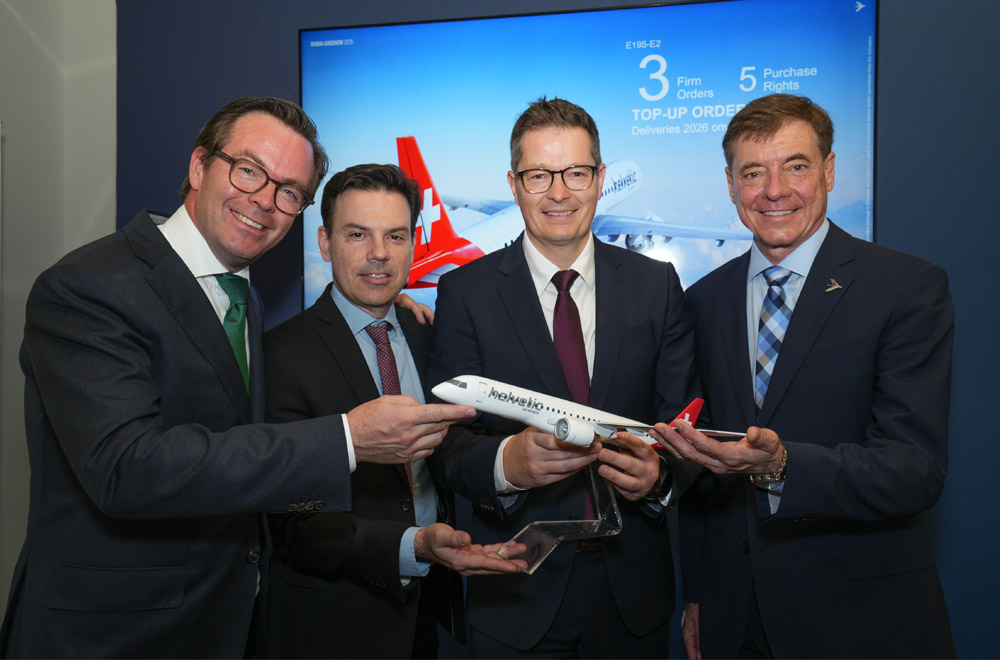 Helvetic Airways s’est déplacée au Dubai Air Show  pour annoncer une nouvelle commande d’Embraer E2. La compagnie suisse a en effet décidé d’acquérir trois E195-E2, couverts par une commande ferme, et a assuré des options sur cinq appareils supplémentaires. Le premier appareil de cette commande sera livré à la fin de l’année 2026.