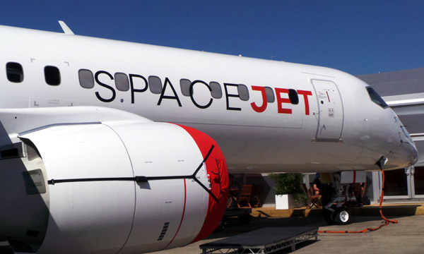 « Aujourd’hui, le compromis est le paradigme de l’aviation régionale. Le SpaceJet est la fin du compromis », clame Steve Haro, directeur Marketing. Il vante une largeur de cabine permettant d’installer quatre sièges de front de 18,5 pouces de large, une hauteur de plus de deux mètres et de grands coffres à bagages permettant d’entrer les valises, les roues devant. Il promet également une réduction à deux chiffres de la consommation carburant et des coûts opérationnels par rapport à ses concurrents.