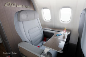 Mais l’avionneur n’a pas imposé HighLine qu’aux Etats-Unis. Air Tahiti a en effet décidé de configurer l’un des quatre ATR 72-600 qu’elle a commandés en juillet 2024 avec le produit. Cet ATR 72-600 sera ainsi aménagé uniquement en classe affaires (avec des rangées de 1-1) et abritera 26 fauteuils Eterea de Geven – un fauteuil conçu pour ATR, offrant 21,6 pouces d’espace, un pitch de 39 pouces, une inclinaison de 7 pouces, une console, des rangements et des ports USB.