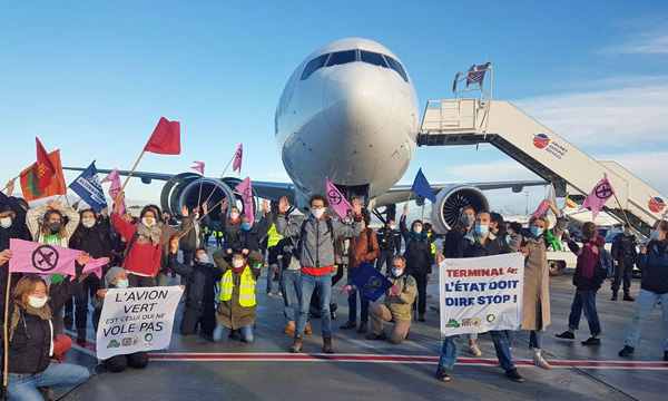 Au programme, des revendications contre le projet du terminal T4 de Roissy, et plus généralement contre tous les projets de développement des aéroports en France (Nantes, Marseille, Caen, Mulhouse…). Le transport aérien gît au sol et le moment est propice pour finir de l’achever, alors que des dizaines de milliers de personnes pourraient bientôt perdre leur emploi faute de reprise significative des vols avant des mois.