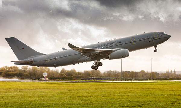 Un Airbus A330 MRTT de la Royal Air Force (RAF) a effectué un vol d’essai la semaine dernière en utilisant que du carburant d’aviation durable (SAF) pour alimenter ses deux moteurs, une première mondiale pour un avion militaire en service.