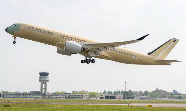 La nouvelle option ULR (Ultra long range) de l’A350 est désormais en vol. Le premier prototype d’A350 doté de cette option ultra-long-courrier (MSN 216) a en effet décollé de Toulouse le 23 avril pour son premier vol d’essais, après avoir réalisé son roll-out (sans moteurs) fin février.