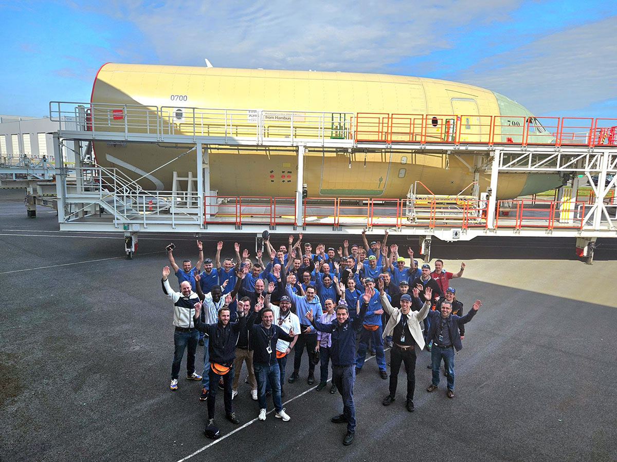 Airbus avait annoncé en mars que le premier tronçon 19 de l’appareil avait a été expédié à Finkenwerder (Hambourg) à bord d’un Beluga en vue de son intégration au fuselage arrière.  La production du tronçon 19 avait été achevée en novembre à Getafe (Espagne). Un peu plus tôt, les deux premiers panneaux latéraux (sections 16/18) produits par Premium Aerotec avaient également rejoint les installations d’Airbus à Hambourg.