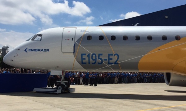 Le Journal de l'Aviation » Industrie aéronautique » L’Embraer 195-E2 effectue à son tour son roll-out