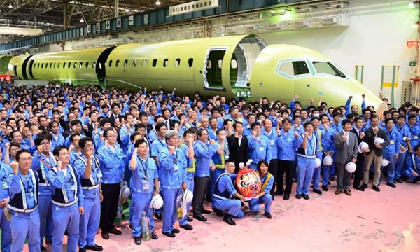 Les essais vont bon train dans les différentes installations de Mitsubishi Aircraft. L’avionneur japonais a fait une nouvelle mise au point sur l’avancement du programme MRJ et indique qu’il en est aux préparatifs pour le transfert des essais en vol aux Etats-Unis. Par ailleurs, le premier appareil de série, destiné à être livré à ANA mi-2018, est entré sur la ligne d’assemblage final de Nagoya, ce qui a donné lieu à une cérémonie le 29 juin.