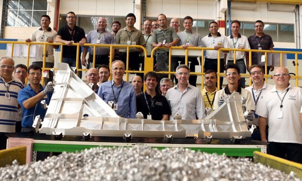Le programme E2 poursuit sa progression. Embraer a célébré le 19 janvier la première découpe d’une pièce de métal destinée à l’E195-E2. Située dans la section centrale du fuselage, il s’agit d’une nervure en aluminium, qui a été produite à Sao José dos Campos.