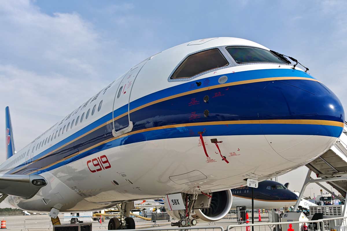 L’avionneur chinois présentait ainsi l’un de ses C919 d’essai lors de démonstrations en vol quotidiennes, un autre exemplaire de série aux couleurs de la compagnie cantonaise China Southern Airlines (première livraison l’année dernière, sept avions en flotte aujourd’hui sur les cent commandés) ainsi qu’un C909 configuré avec une cabine VVIP, le CBJ.