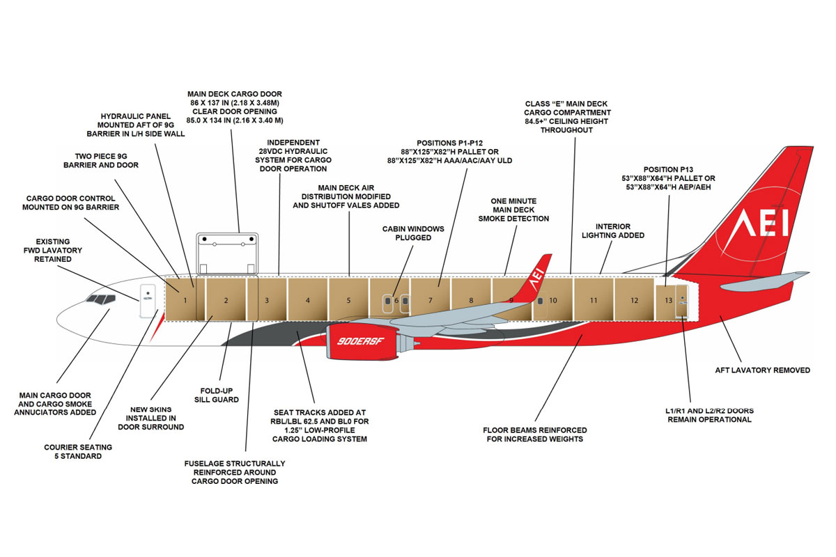 La société américaine Aeronautical Engineers Inc. (AEI) a annoncé le 22 octobre le lancement officiel de son programme de conversion du Boeing 737‑900ER en avion tout cargo. Désigné B737‑900ERSF (Special...