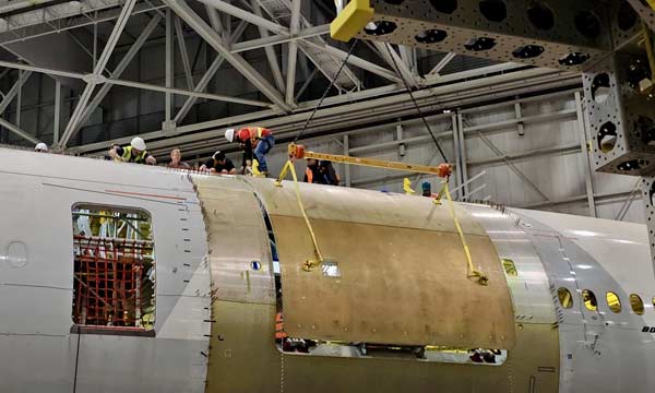 Mammoth Freighters et Aspire MRO ont franchi une étape importante dans leur programme de conversion du Boeing 777-300ER en avion tout cargo avec l’installation de la porte cargo principale sur le 777-300ERMF. Cette réalisation fait suite à la découpe initiale du fuselage en août 2024 à Fort Worth (Texas). La nouvelle porte, 40 cm plus large que celle du 777F, offre une flexibilité accrue pour le chargement du fret. Mammoth Freighters prévoit toujours une mise en service du premier 777-300ERMF pour AviaAM Leasing. La société vise l’obtention de la certification du STC de conversion du 777-200LR d’ici fin 2025, suivie de celle du 777-300ER six mois plus tard. Le 777-300ERMF converti pourra transporter 98 tonnes de fret sur des liaisons ne dépassant pas 4800 nautiques (8800 km), ciblant principalement les liaisons entre l’UE et les États-Unis ou la Chine et l’UE. Il se positionne directement face au programme Boeing 777-300ERSF « Big Twin » mené par Israel Aerospace Industries (IAI) et AerCap.