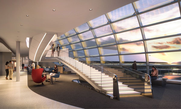 D’une superficie de 3 000 m² et comptant 570 places assises, il a pour objectif de représenter un îlot de calme et tente de retranscrire l’idée de lévitation et de grâce, notamment grâce à des formes tout en rondeur et des matériaux durables.
