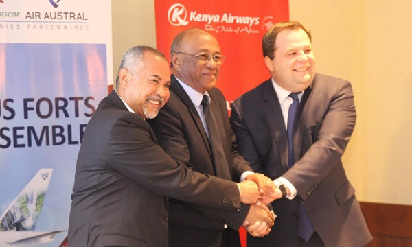 Air Austral et Air Madagascar se dote d’un meilleur accès au continent africain. Les deux partenaires ont signé un protocole d’accord avec Kenya Airways établissant les principes d’un nouveau partenariat qui ferait de Nairobi un nouveau hub pour les deux compagnies de l’Océan Indien, aux côtés d’Antananarivo et Saint-Denis de la Réunion.