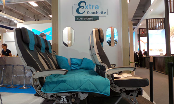 Quant à cette classe économique, Loisirs, elle sera elle aussi renouvelée, avec une meilleure assise (qui bascule avec le dossier lorsque le passager souhaite incliner son siège), un renforcement des supports lombaires, des prises et un écran qui passe de 9 à 11 pouces. Et l’Extra-Couchette…