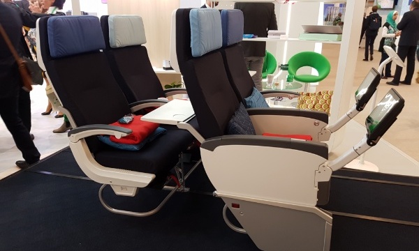 Le siège de Premium Economy sera exposé à partir du 26 septembre au BHV du Marais. Là encore, il s’agit toujours du siège de Zodiac Aerospace qui équipe déjà les 787. Par rapport aux cabines Best installées sur certains 777, il présente une inclinaison accrue à 130° (contre 123°), un pitch de 40 pouces (contre 38 pouces) et un écran tactile agrandi de 1.3 pouce (par rapport aux 777 et 787) à 13.3 pouces.
