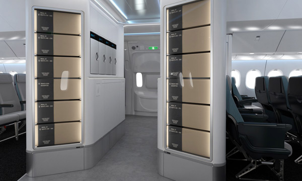 AIM Altitude estime ainsi que l’espace gagné pourra permettre aux compagnies aériennes d’ajouter une rangée de sièges supplémentaires, voire d’ajouter un autre monument intérieur pour libérer de l’espace ailleurs. Ce nouveau concept de galley sera évidemment compatible avec tout type d’insert existant (bouilloires, cafetières, fours…), tout en offrant la possibilité de proposer une offre en libre-service, par exemple pour du snaking.