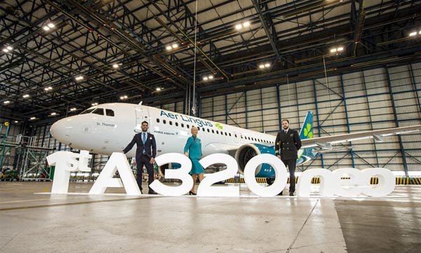 Aer Lingus a célébré la réception de son premier Airbus A320neo. L’appareil porte l’immatriculation EI-NSA et a été baptisé Saint Thomas.
