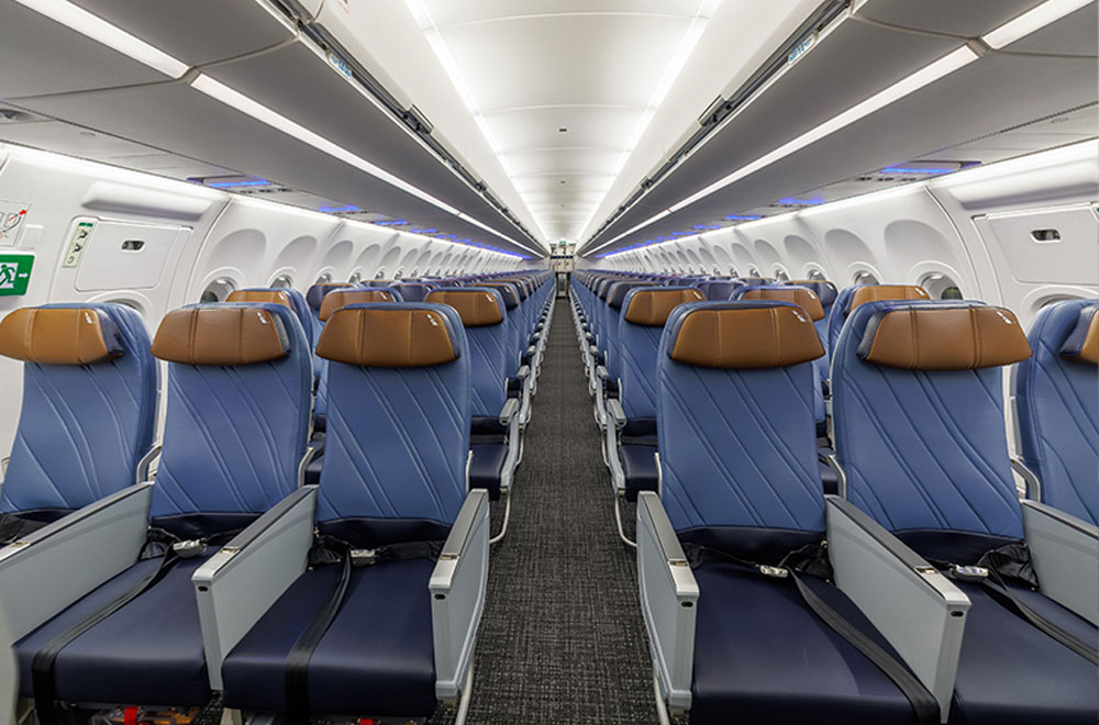 L’appareil est aménagé en configuration triclasse et compte vingt fauteuils de classe affaires (Flagship Suite), douze de premium economy et 123 de classe économique.