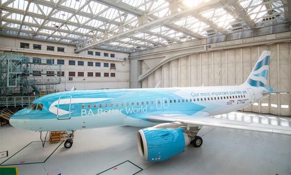 British Airways a lancé un nouveau programme BA Better World, devant renforcer son engagement et ses actions en faveur d’une aviation décarbonée. Le symbole de ce programme est un Airbus A320neo qui a été repeint à des couleurs devant évoquer l’écologie.