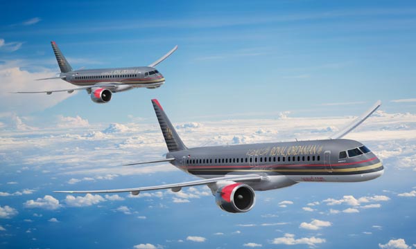 Embraer et le loueur Azorra ont annoncé un nouvel accord avec Royal Jordanian Airlines (RJ) portant sur huit appareils, soit quatre E190-E2 et quatre E195-E2, pour une valeur de 635 millions de dollars au prix catalogue.