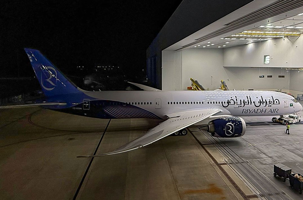Le premier 787-9 de Riyadh Air est sorti du hangar de peinture de Boeing il y a deux semaines. © Riyadh Air