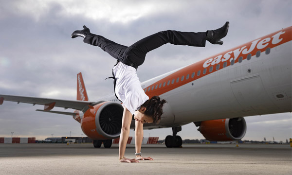 (La campagne publicitaire veut promouvoir la diversité des parcours pouvant mener à une carrière de pilote et met en avant une mère de famille, un DJ et, ici, une ancienne gymnaste. Photo © easyJet)