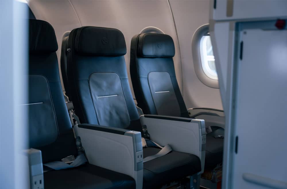 Pour cette nouvelle cabine, Lufthansa a adopté de nouveaux fauteuils fournis par Geven, « particulièrement ergonomiques », avec un appuie-tête ajustable et une plus forte inclinaison en classe affaires. Chacun est par ailleurs équipé de ports USB A et C et d’un dispositif pour tenir les tablette et smartphone.