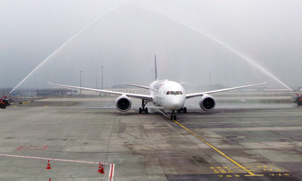 « C’est plus qu’un avion, c’est un véritable projet d’Air France ». C’est ainsi que Thierry Bellot, responsable du projet 787 chez Air France et le commandant de bord qui a réalisé le vol de convoyage depuis Seattle, a salué l’arrivée du premier Dreamliner au sein de la flotte de la compagnie française. Cet appareil, immatriculé F-HRBA, a en effet atterri à CDG au matin du 2 décembre, sous le salut des pompiers de l’aéroport.