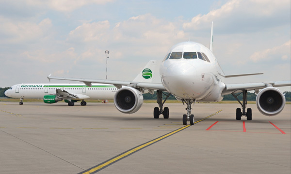 Germania exploitait une flotte composée de dix-huit A319, six A321 et quatre Boeing 737-700. Elle avait également passé une commande auprès d’Airbus pour vingt-cinq A320neo qui devaient être livrés à partir du premier semestre 2020. Elle enregistrait des pertes depuis plusieurs années.