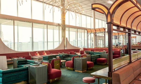 La « ballade de Paris » est le tunnel d’accès à la nouvelle salle d’embarquement. Imaginée par Jean-François Rauzier, elle permet de découvrir des reproductions de monuments et d’éléments d’architecture parisiens dans un esprit surréaliste. Image © Karel Balas pour le Groupe ADP