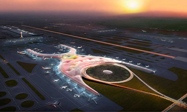 La première phase du projet prévoit la construction d’un terminal d’une surface de 667 000 m², capable d’accueillir 50 millions de passagers annuels et de répondre aux besoins de la ville jusqu’en 2028. Il sera doté de 90 postes avions au contact et d’une capacité d’accueil supplémentaire d’une trentaine d’appareils au large. Trois pistes parallèles, donc opérables simultanément, le desserviront, lui donnant la capacité de gérer 550 000 mouvements par an. L’investissement nécessaire à ces réalisations est de 9,4 milliards de dollars, financé à 50% par le gouvernement et à 50% par des fonds privés.