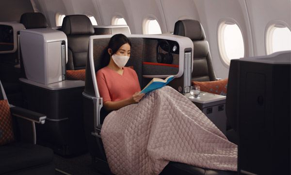 Singapore Airlines avait déjà annoncé avoir choisi le Vantage de Thompson Aero Seating, qui a été personnalisé avec Factorydesign. Il permet à la compagnie de proposer un fauteuil de 22 pouces de large, convertible en lit plat de 76 pouces (193 cm). Chacun est équipé d’un écran tactile haute définition de 16 pouces et de prises de chargement et USB. Surtout, ce choix permet à la compagnie de proposer un aménagement avec deux rangées à quatre sièges de front séparées par une rangée de deux sièges de front, les « trônes » très prisés des personnes voyageant seules, avec davantage de rangements.