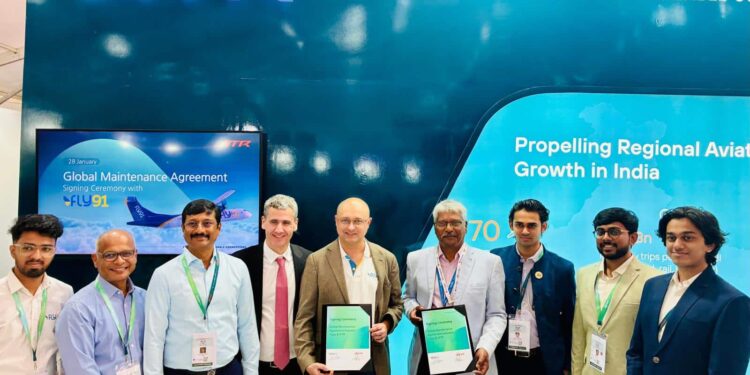 Indian regional carrier Fly91 (Just Udo Aviation Private Limited) has signed a new eight-year Global Maintenance Agreement (GMA) with aircraft manufacturer ATR.