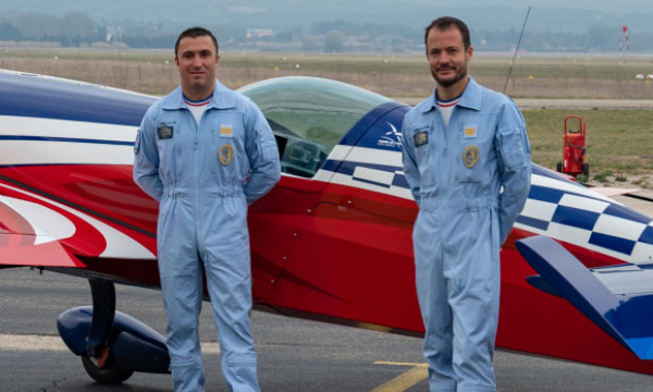 Invités du Podcast de l’Aviation cette semaine, Florent Oddon et Victor Lalloué, capitaines, membres de l’équipe de voltige de l’armée de l’air et de l’espace (EVAAE).